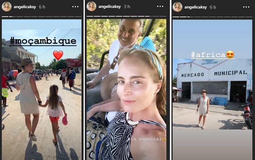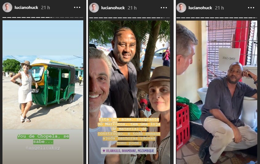 Por meio do Stories Instagram, Angélica e Huck têm mostrado as belas paisagens do local e as casas e comércio da região, como o mercado municipal. Angélica também posou ao lado de crianças do local e de um veículo chamado de “Chopela”.
