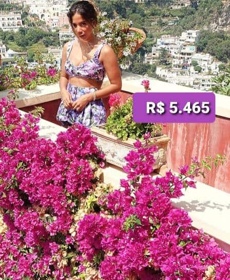 Em outros passeios pela Itália, Anitta usou um look Colcci com uma bolsa Louis Vuitton que custa R$ 6.298 e também um vestido Dolce & Gabbana no valor de R$ 10.890 e completou com sandálias de R$ 6.875.