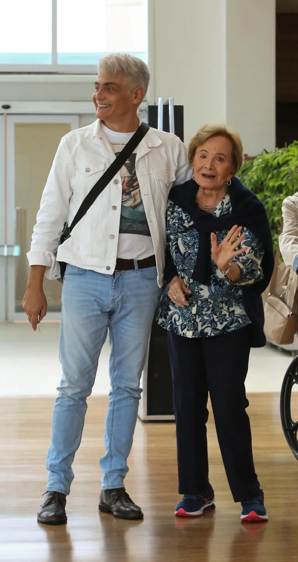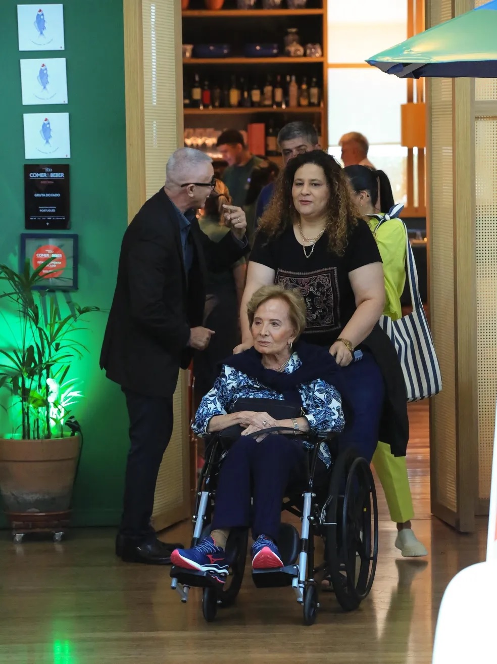 Na lista das maiores damas da teledramaturgia nacional, a viúva deixou o local numa cadeiras de rodas, mas chegou a posar de pé acenando para os fotógrafos presentes na porta do estabelecimento acompanhada pelo herdeiro.