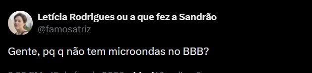 “Gente, pq q não tem microondas no BBB 26?”