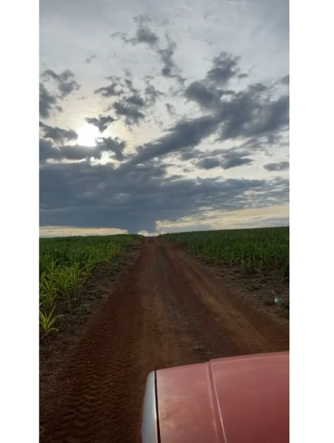 Depois disso, o fazendeiro seguiu mostrando a caminhonete vermelha, filmou o pôr do sol do local, a plantação de milho e a imensidão de suas terras. “Ave Maria, lugar abençoado do mundo está aqui gente”, disse.