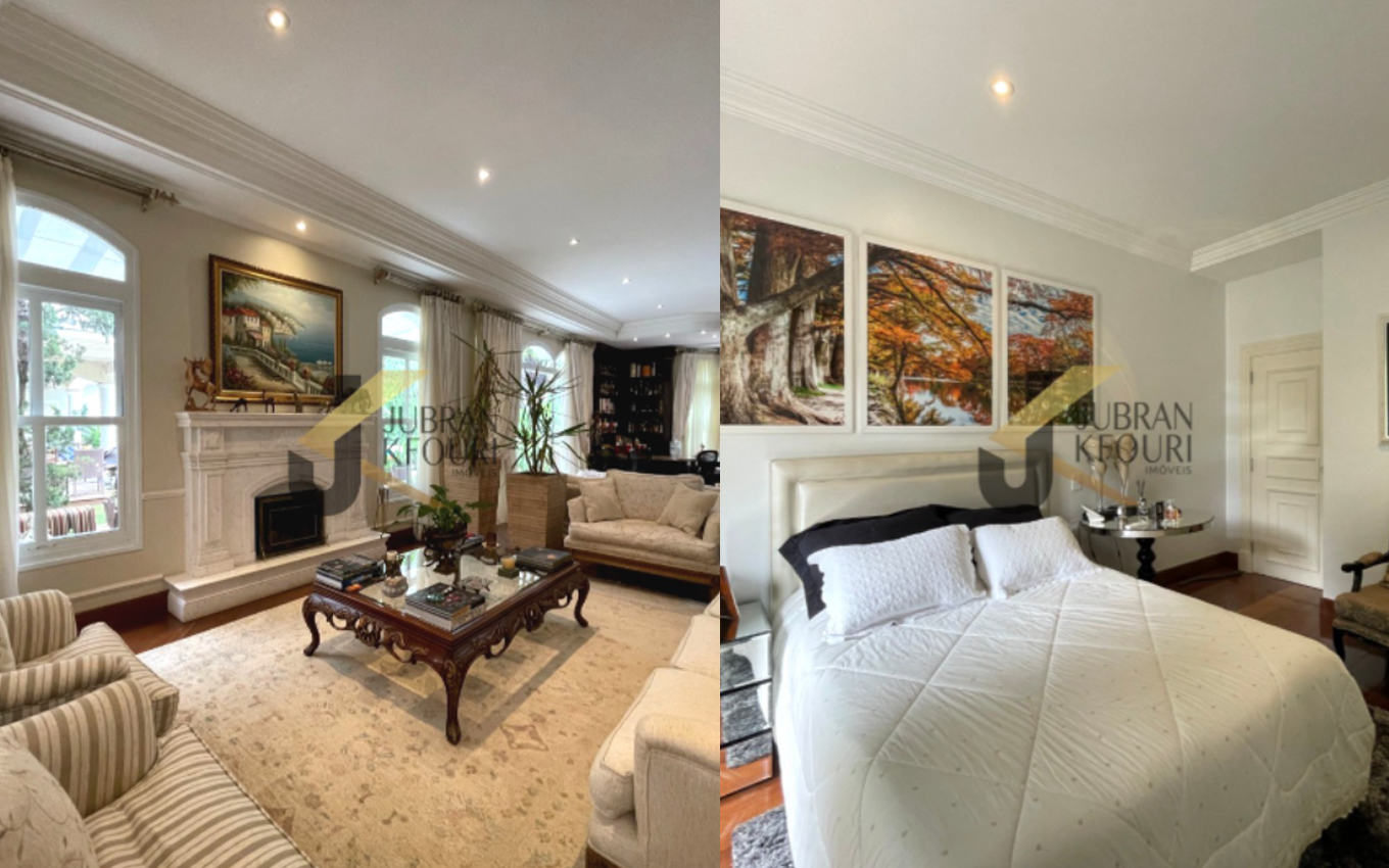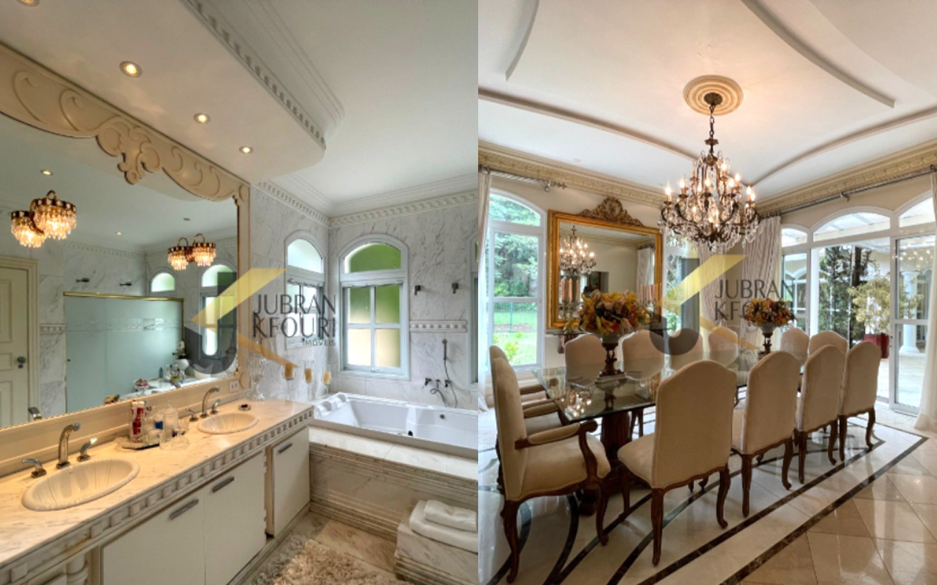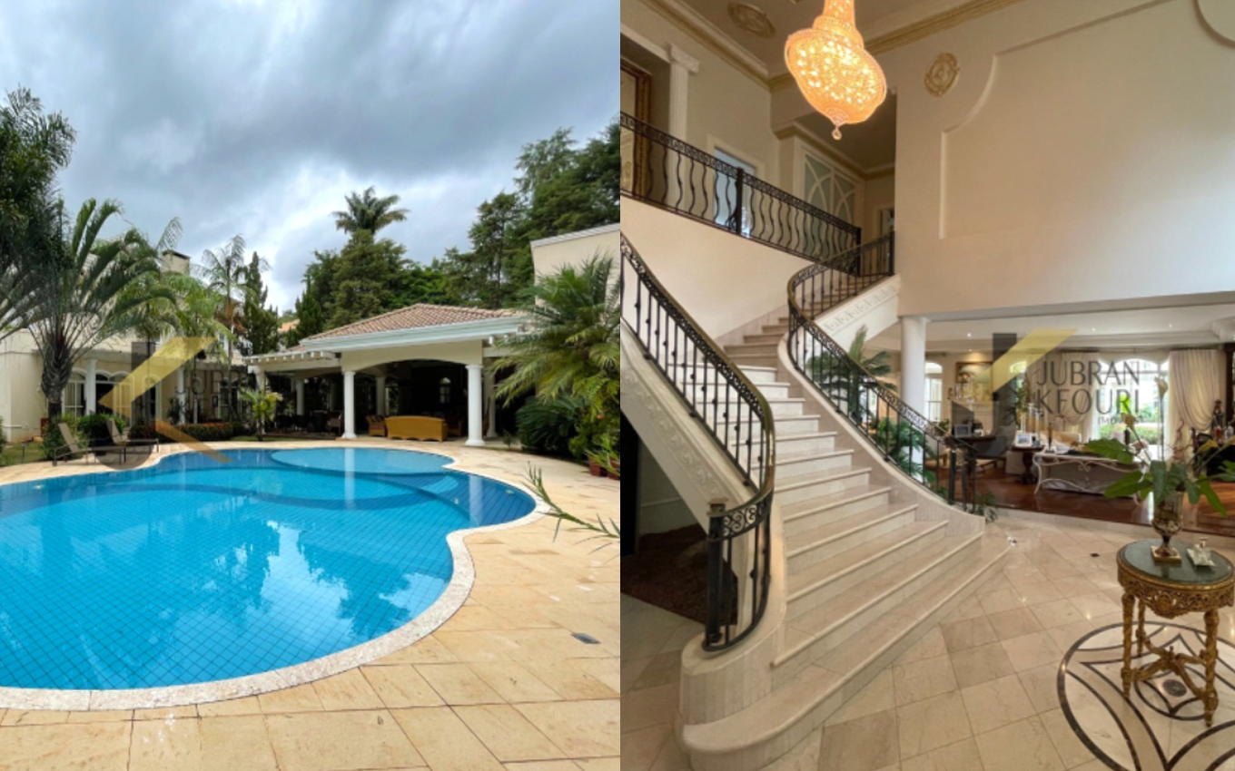 A casa de altíssimo padrão está sendo anunciada no site de uma corretora e possui cinco suítes e uma garagem para nove carros. Além disso, a propriedade também tem sala de lareira, sala de jantar, escritório com entrada independente, lavabo e copa-cozinha planejada.