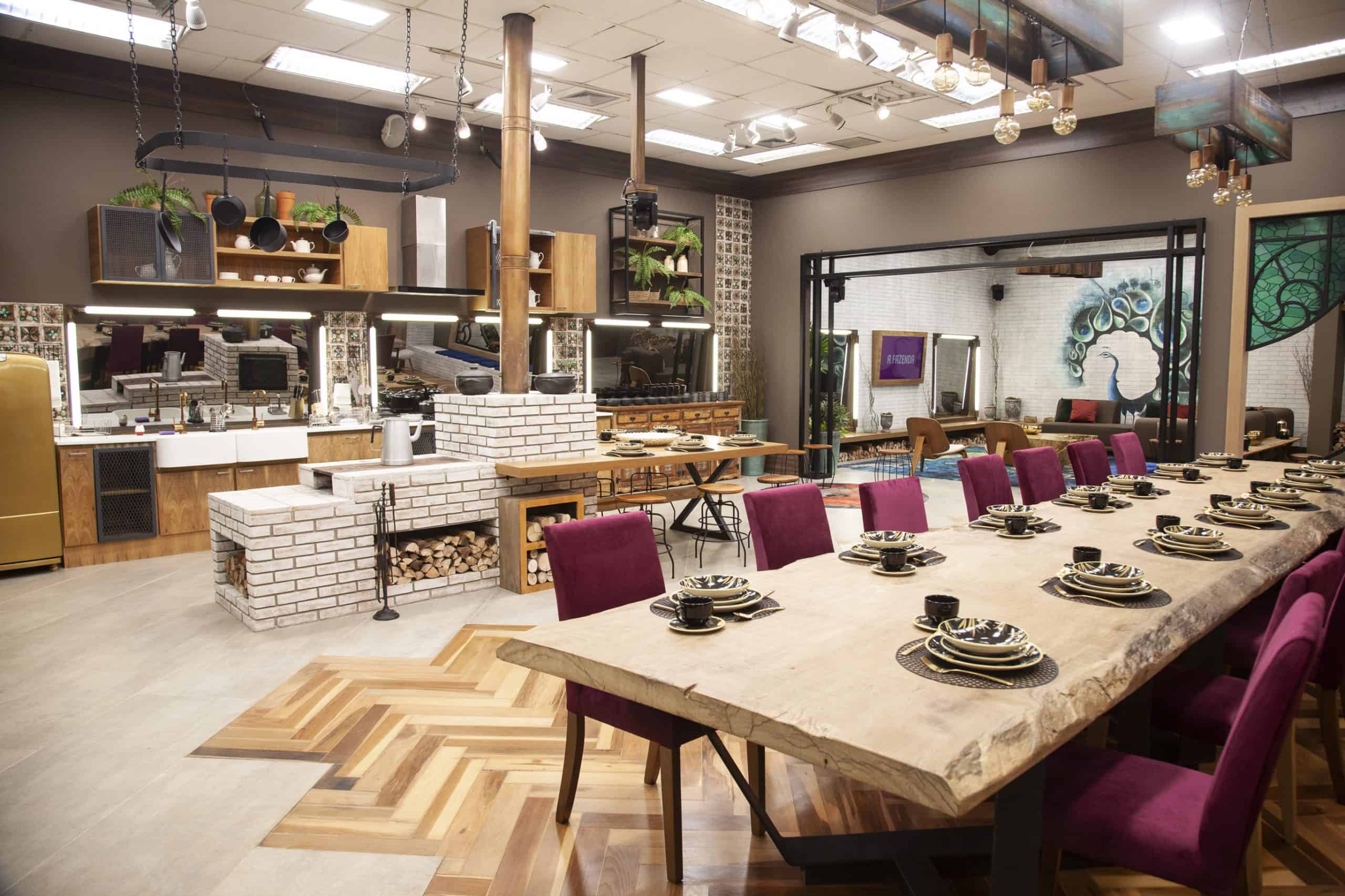 - Cozinha e sala seguem próximas em A Fazenda 2020 (Imagem: Edu Moraes / Record)