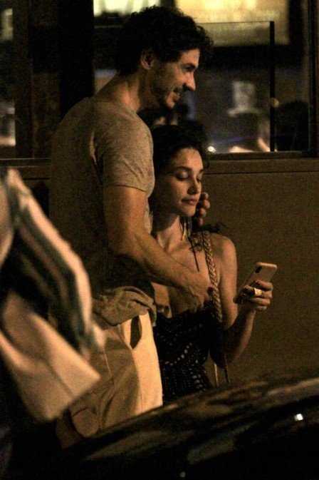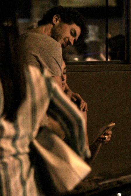Na hora do jantar, os pombinhos quiseram algo mais discreto e escolheram uma mesa longe das janelas. Quando já iam embora, a atriz e o namorado ficaram do lado de fora do local esperando um carro de aplicativo.