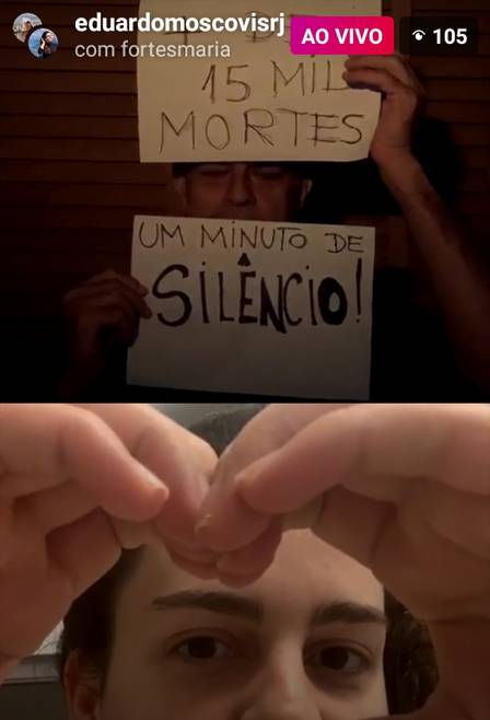 E Eduardo Moscovis não está sozinho nessa. Durante a transmissão, ele coloca amigos e seguidores para acompanhá-lo. Assim como ele, os convidados também permanecem em silêncio.