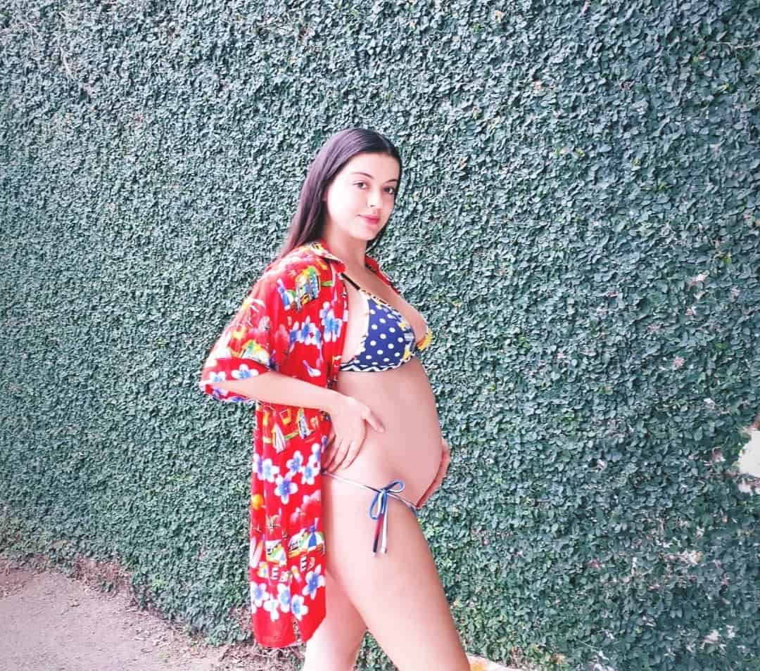 Primeira foto nós 3”, escreveu Patrícia ao postar um clique com Adnet em seu perfil do Instagram, que é trancado para não-seguidores. Foi a primeira foto em que ela apareceu com o marido e exibiu a barriga do sexto mês de gravidez, ao mesmo tempo.
