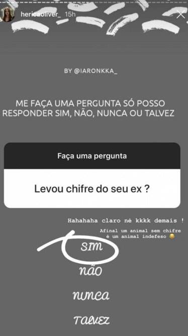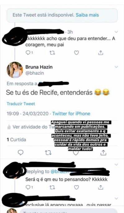 Ao ver a resposta de Oliver, Hazin se defendeu explicando que não estava falando da ex de Jonas, e sim de uma pessoa que mora em sua cidade. “Cansada, porque tudo que eu posto acham que é sobre isso. Até quando falo sobre relacionamento, que sempre foi o que gostei de falar aqui. É cansativo, sabe?“, afirmou.