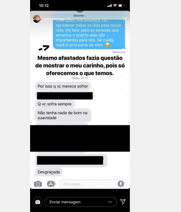 Aylle, que se relacionou com o cantor por 9 meses, usou seu perfil no Instagram Stories para contar o acontecido. Na rede social, ela compartilhou conversas entre os dois e chegou a publicar uma foto em que aparece machucada.