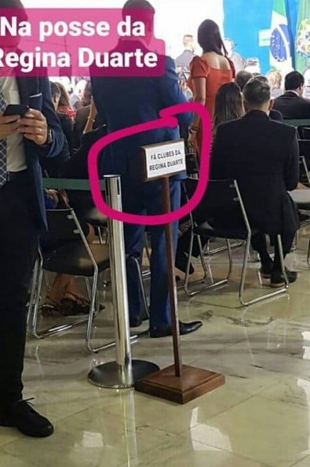 A atriz Regina Duarte tomou posse na última quarta-feira (04) como nova secretária especial da Cultura. O evento, que aconteceu no Palácio do Planalto, contou com a presença de jornalistas e autoridades, porém algo inusitado chamou a atenção de quem esteve no local.