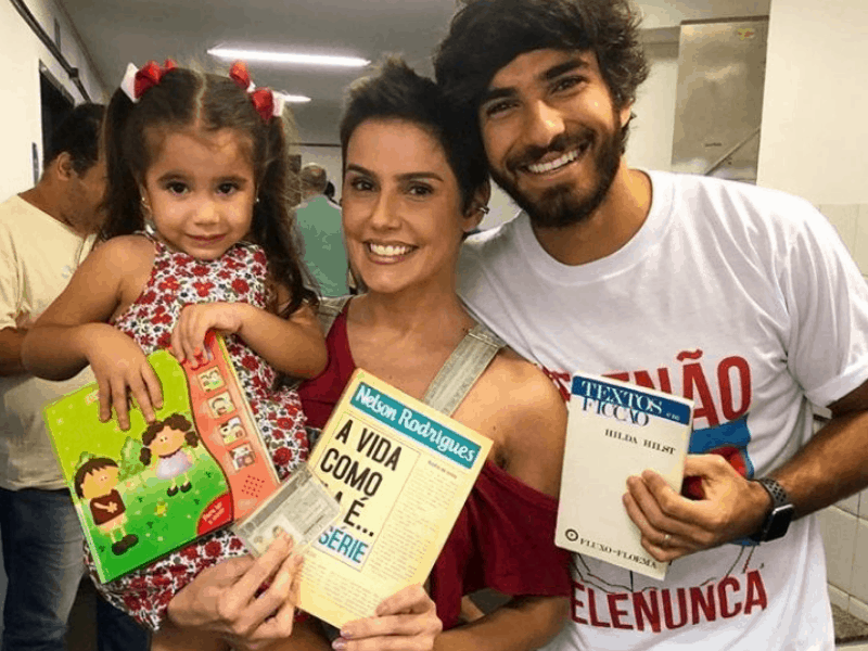 Luis Lobianco, que também está na novela, seguiu o exemplo e portou o livro “Devassos no Paraíso”, de João Silverio Trevisando. Da mesma trama, Deborah Secco e o marido Hugo Moura; ela com “A Vida Como Ela É”, de Nelson Rodrigues.