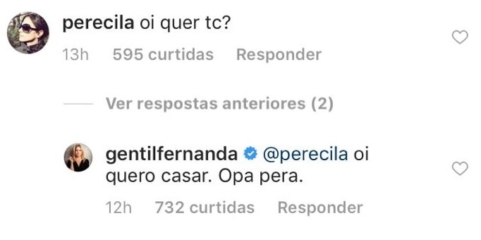 A namorada de Fernanda, Priscila Montandon, também comentou a imagem: “Oi, quer teclar?”, brincou ela. “Oi, quero casar. Opa, pera”, respondeu Fernanda. Confira: