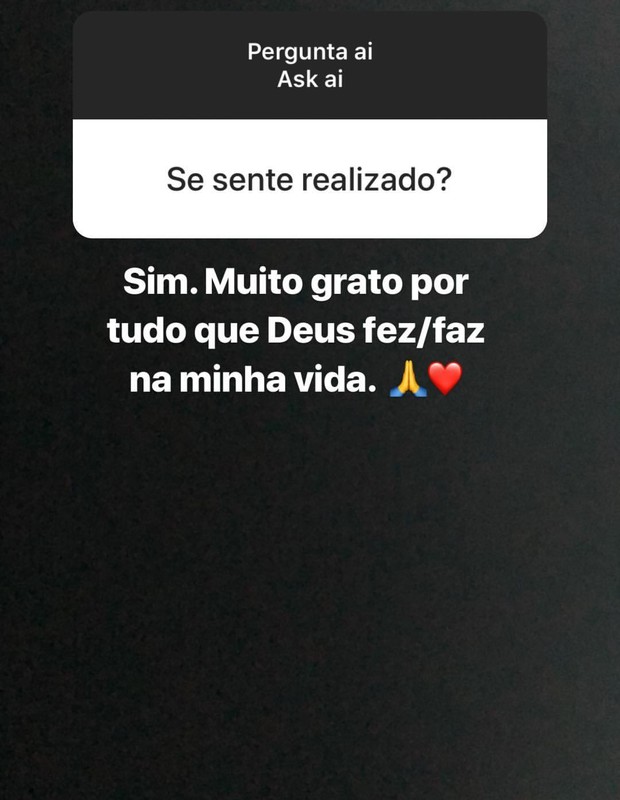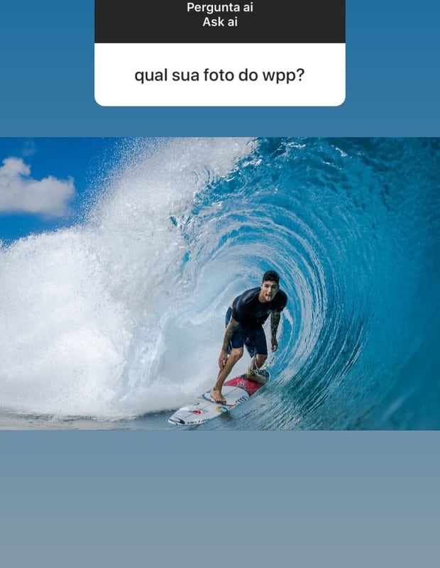 O surfista brasileiro ainda contou sobre a realização pessoal e profissional. “Sim. Muito grato por tudo que Deus fez / faz na minha vida!“, disse Medina, que revelou também os seus pecados gastronômicos: “Como / comia. Mas comecei a me alimentar bem agora.Saudade do meu chocolate já“.