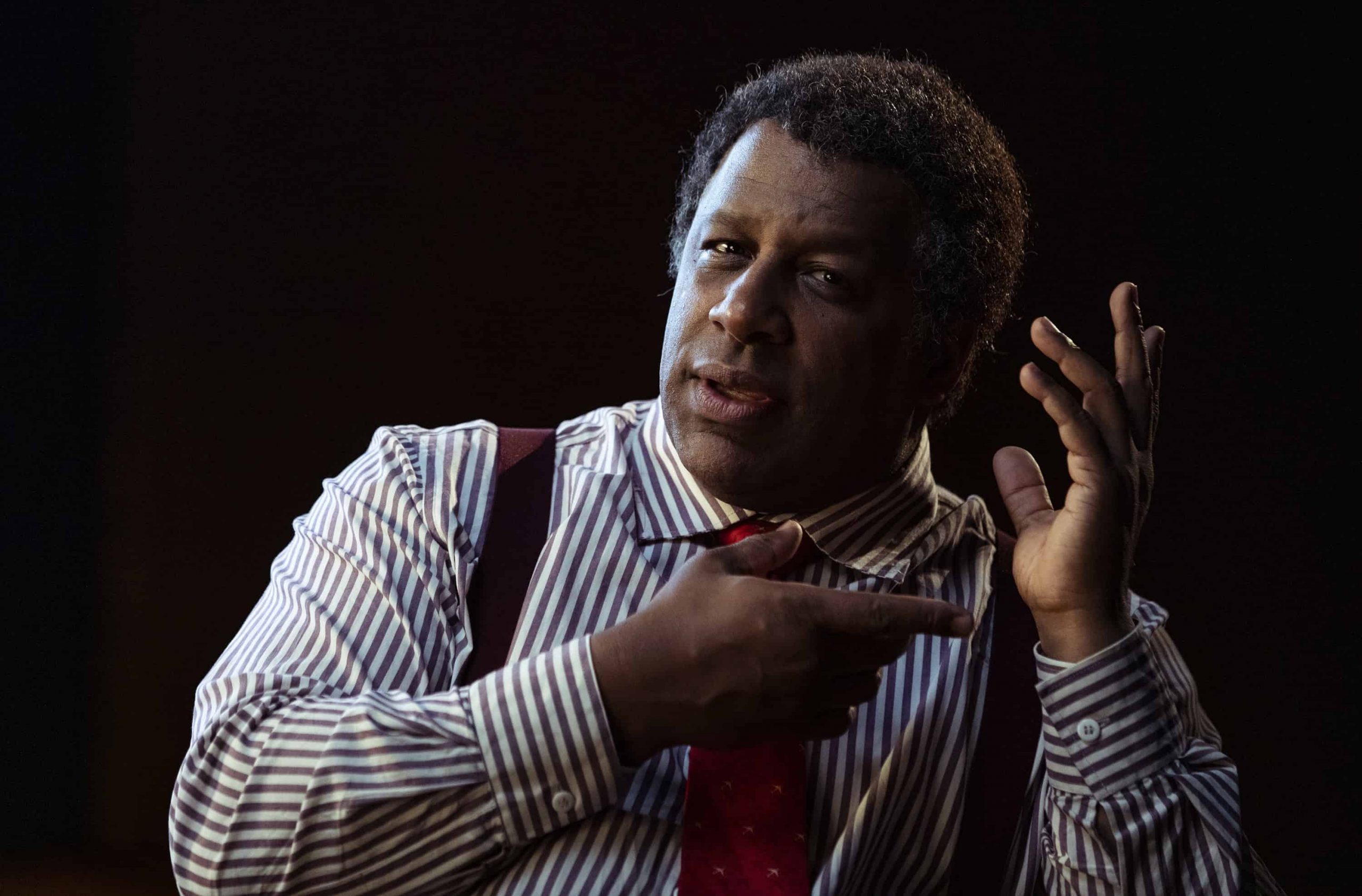 - James Baldwin (Angelo Flavio) em Falas Negras (Imagem: João Cotta / Globo)
