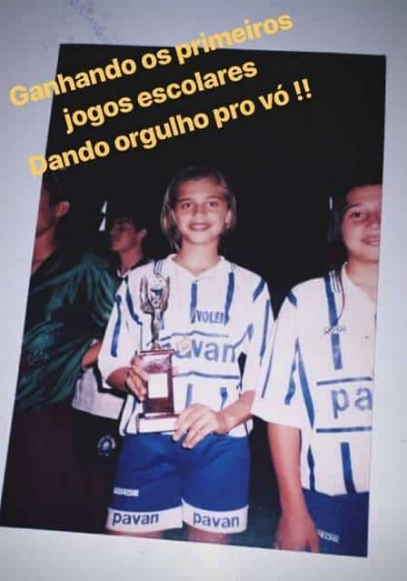 A loira ainda lembrou a sua breve carreira como jogadora de vôlei, na juventude, na sua cidade natal, com direito a vitória nos jogos escolares, e revelou que sua avó era uma das suas mais fiéis torcedoras.