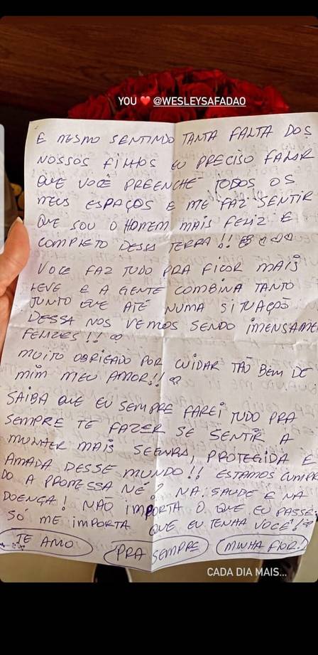 - Wesley Safadão enviou carta para Thyane Dantas (Imagem: Reprodução / Instagram)