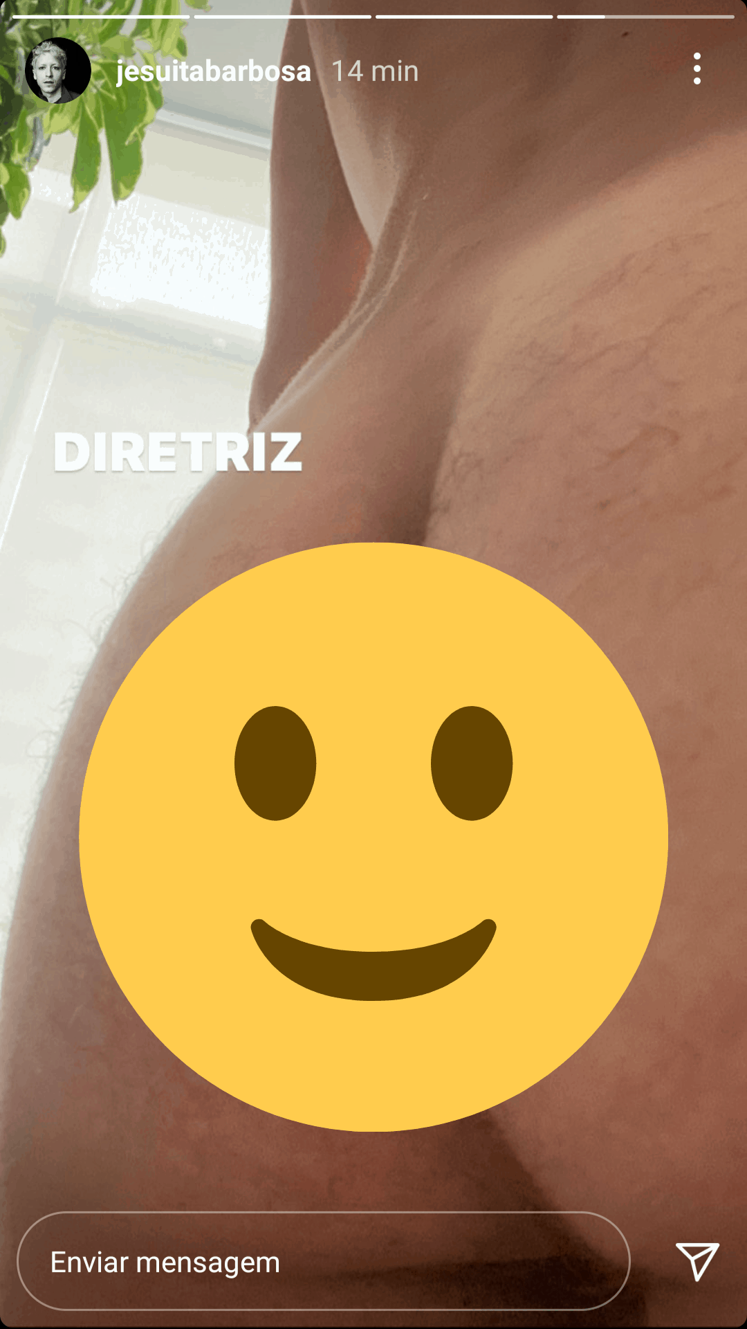 Não é possível, porém, acessar as publicações (reproduzidas abaixo). O Instagram de Jesuita acabou excluído. Curiosamente, na quarta-feira (16), Barbosa divulgou um ensaio para a revista Elle Brasil, no qual surgiu nu em cima de uma cama, apenas com uma boina e um cigarro. Na legenda, o ator salientou: “Nem toda nudez será castigada”.