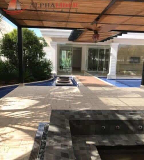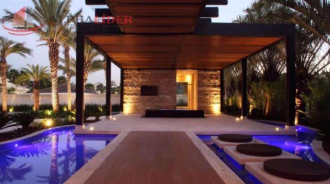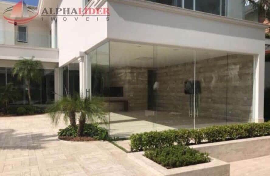Em dois mil metros quadrados, o imóvel possui cinco suítes, garagem com vaga para 20 carros, elevador, adega climatizada, lavabo, cozinha com duas despensas, lavanderia, área para empregados, espaço gourmet com lavabo e vestiário integrado com piscina, varanda coberta, spa com sauna, hidro aquecida, piscina e um espelho d’água.