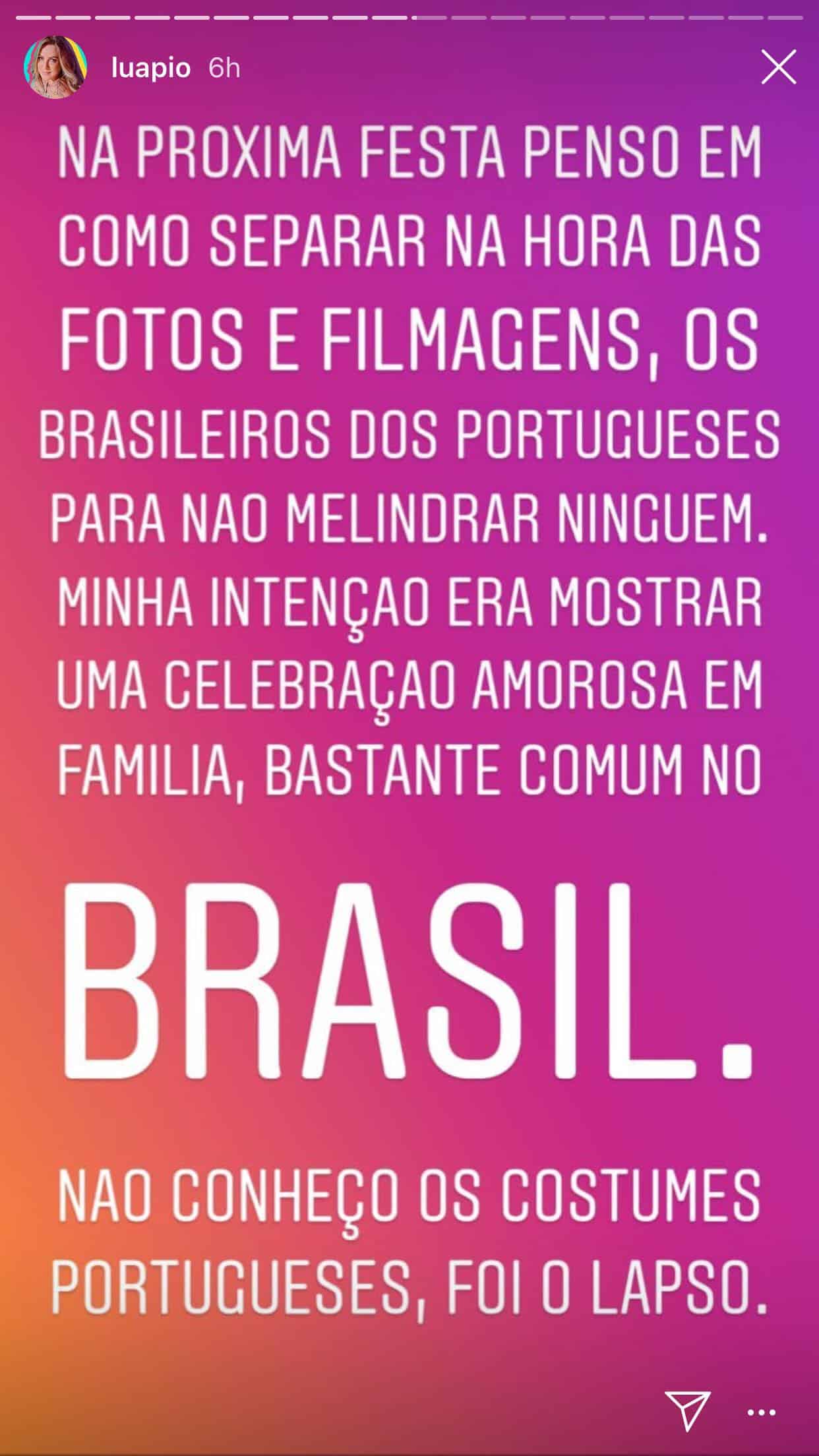 Ainda se habituando com a vida e com os costumes portugueses, Luana Piovani, que se mudou para Cascais, em Portugal, no começo deste ano, acabou cometendo uma gafe no seu Instagram, mas logo tratou de se redimir com os nativos.