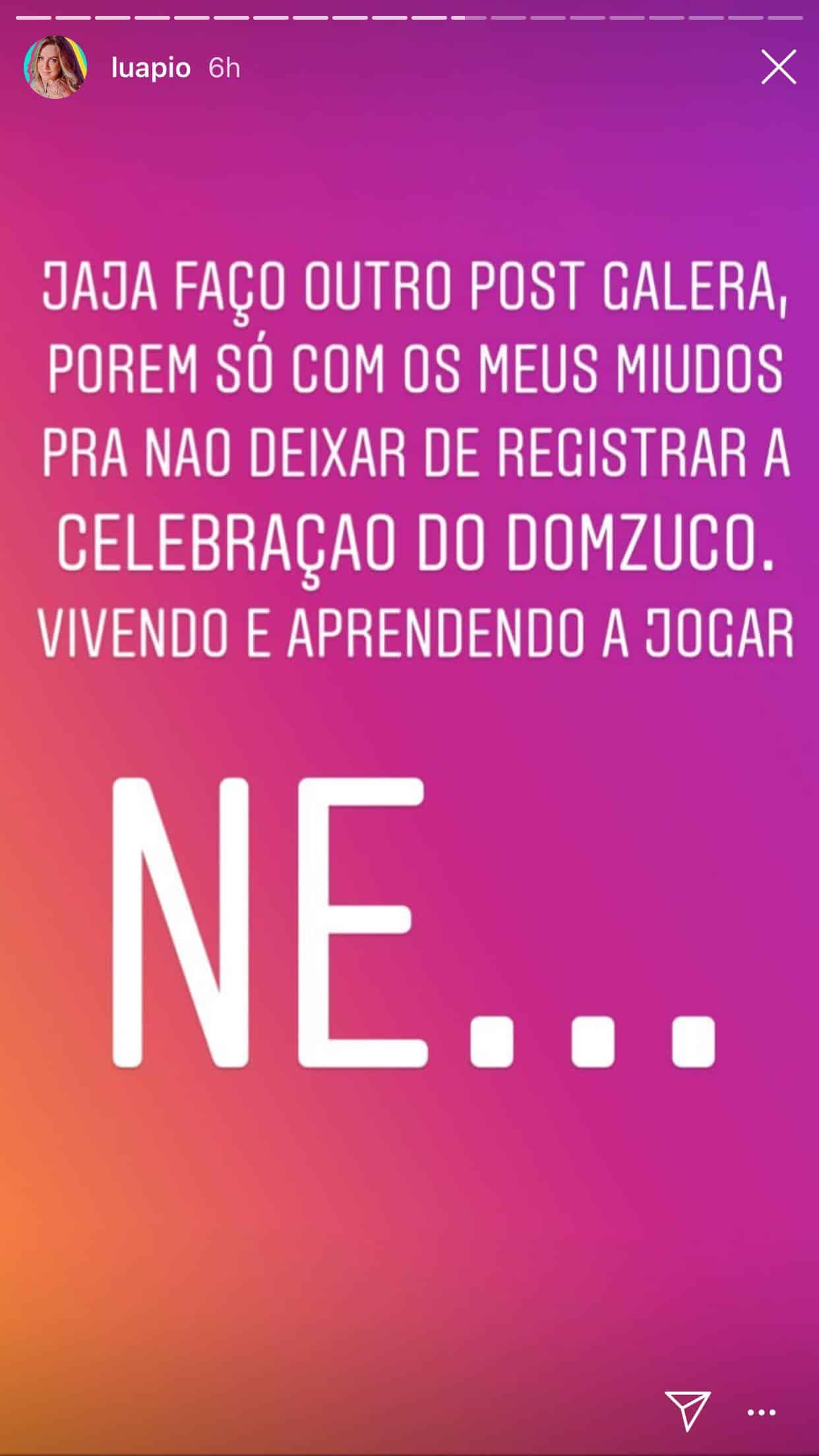 “Bom dia! Você que me segue e é pai ou mãe de algum coleguinha do Dom, desculpe-me pela postagem. De onde venho é comum postar filhos e amigos confraternizando. Já entendi a regra daqui, não se repetirá“, escreveu Luana.