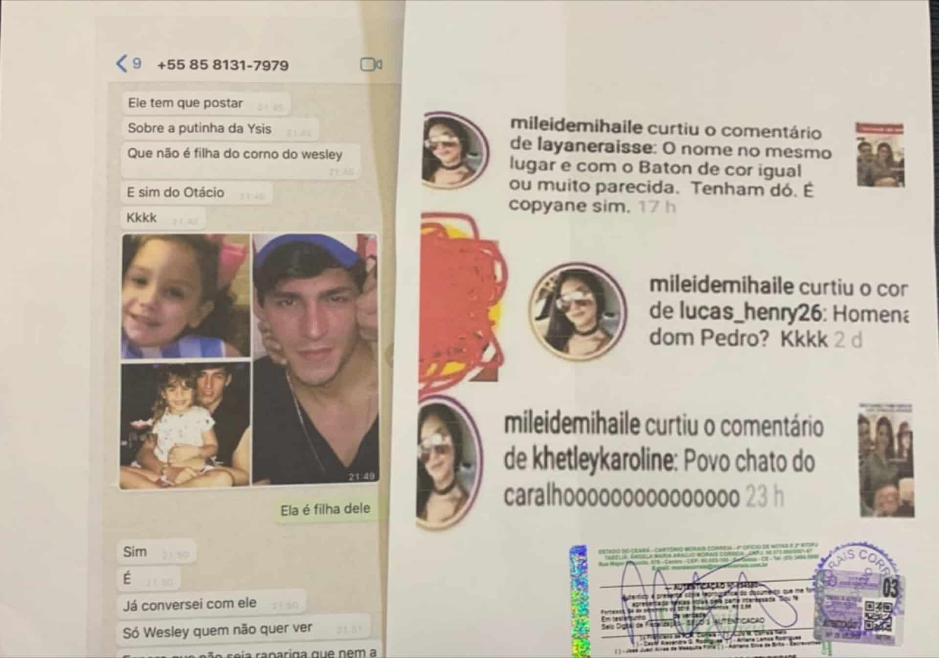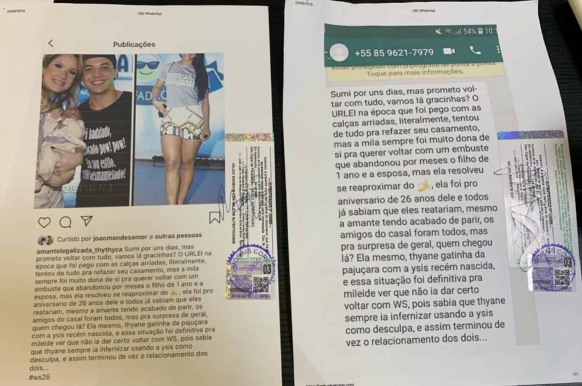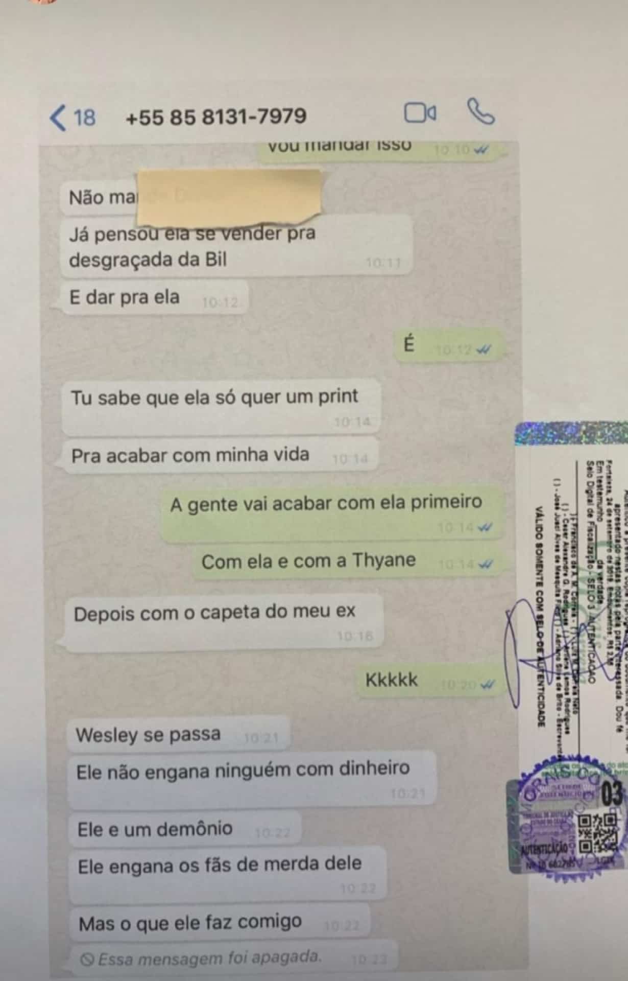 A mensagem seguinte era um pedido para que a primeira fosse publicada: “Poste esse! E bota uma foto minha (Mileide), Wesley, Yhudy (filho de Mileide com Safadão), e a puta (Thyane)“.