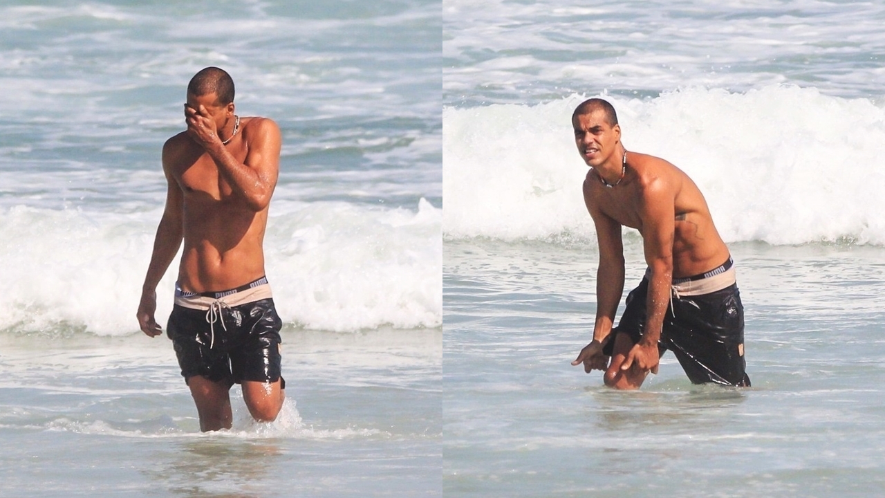 Na orla fluminense, ao ator foi fotografado com algumas amigas num papo bacana e também deu vários mergulhos, se refrescando em meio ao calor que estava fazendo.