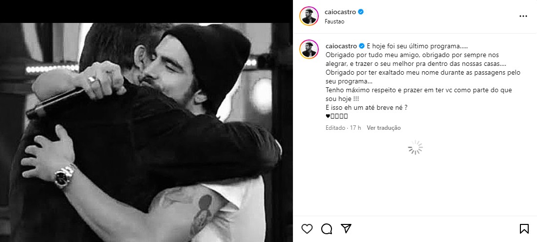 Caio comentou sobre sua amizade com o ex-Globo pela exibição do seu último programa na Band, exibido na noite da última sexta.