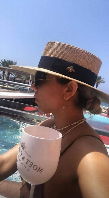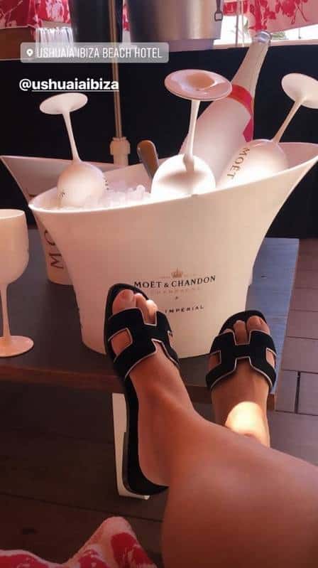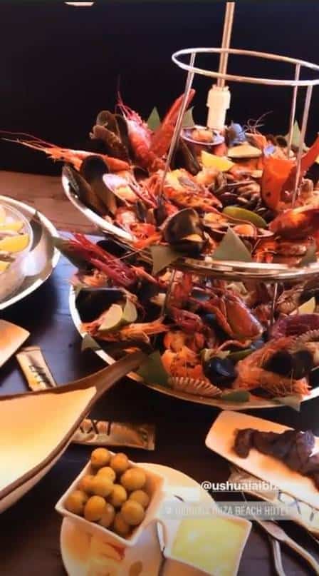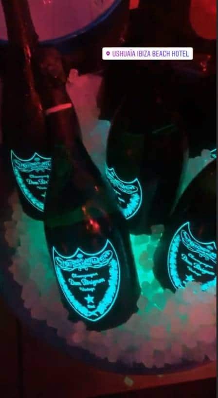 No local, a modelo já curtiu no camarote um show de David Guetta, cercada de garrafas de espumantes e frutos do mar para o jantar.
