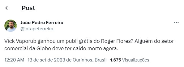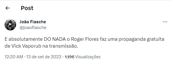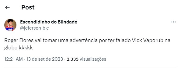 Outro apostou num desconto do valor da publicidade no salário de Roger no mês que vem. Um terceiro especulou uma possível advertência a Flores após a gafe.