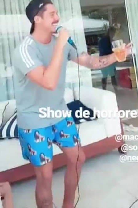No Stories do Instagram de um convidado, foi possível ver Ronan, Renan Machado, empresário e irmão de Anitta, e Nego do Borel cantando em um karaokê durante a festa na casa da “poderosa”. “Show de horrores“, brincou ele.