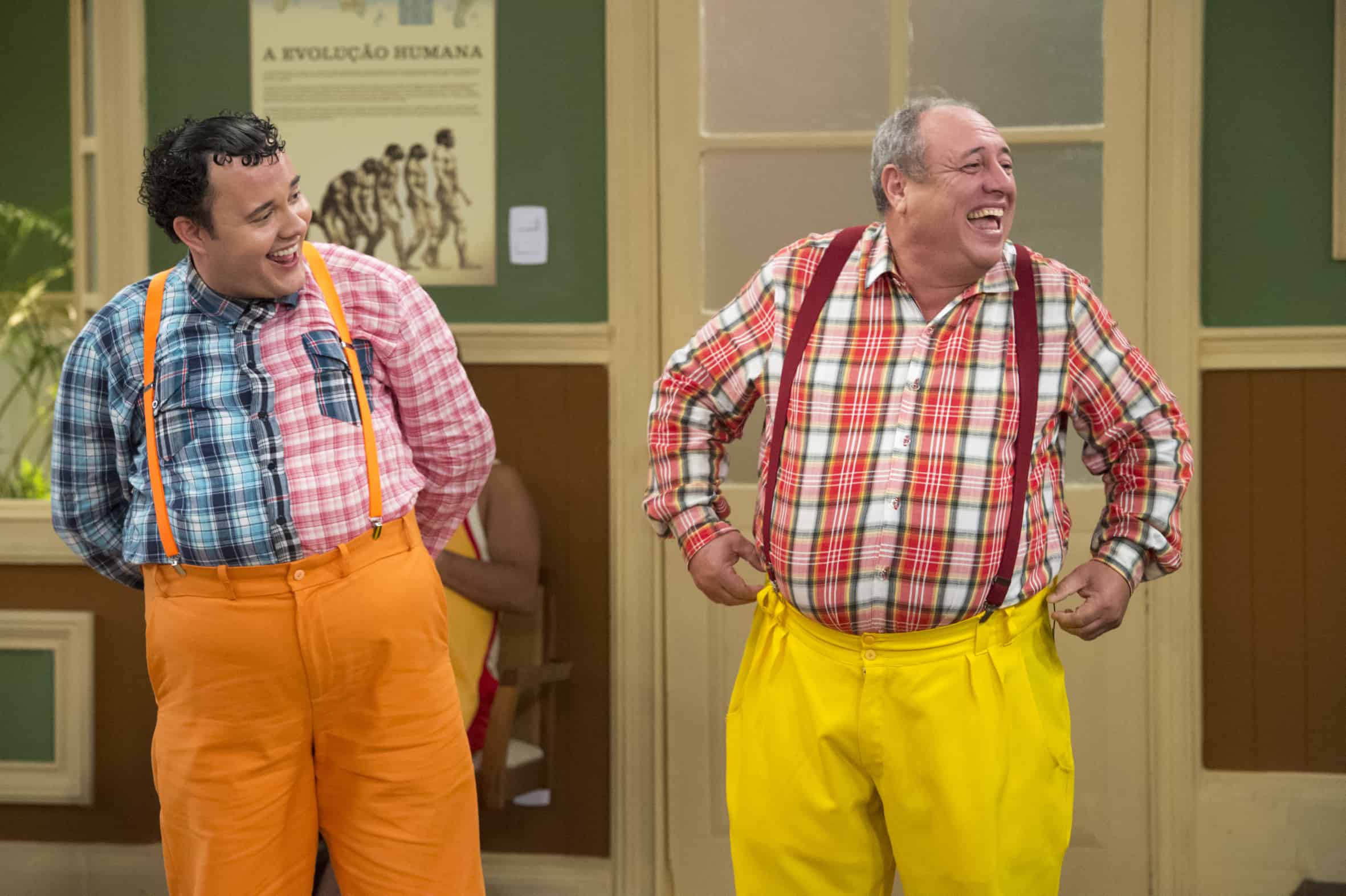 - Professor Raimundo (Bruno Mazzeo) e Professor Capilé Sorriso (George Sauma) (Imagem: Divulgação / Globo)