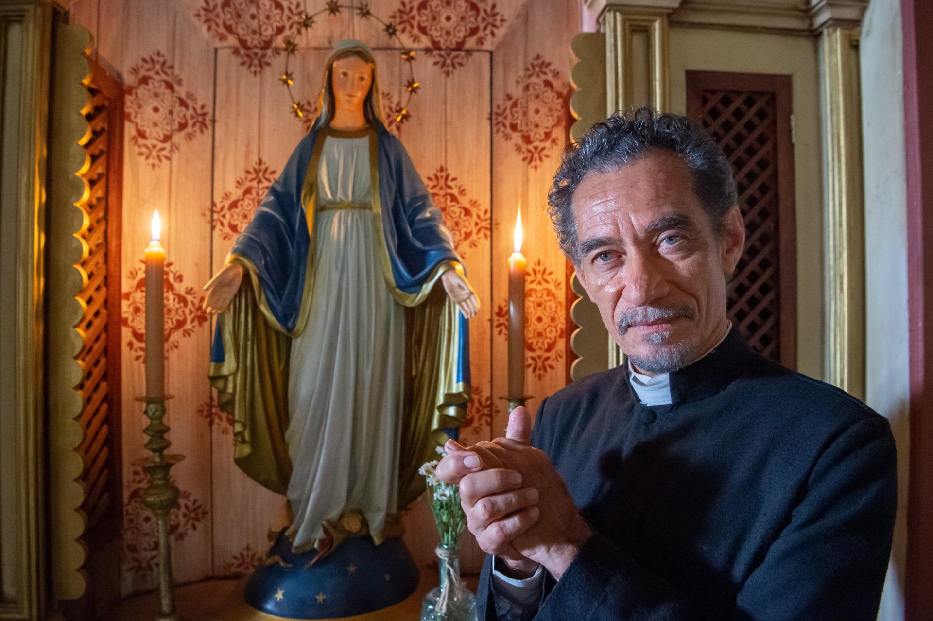 - Padre Santo (Chico Díaz) Renascer (Imagem: Fábio Rocha / Globo)