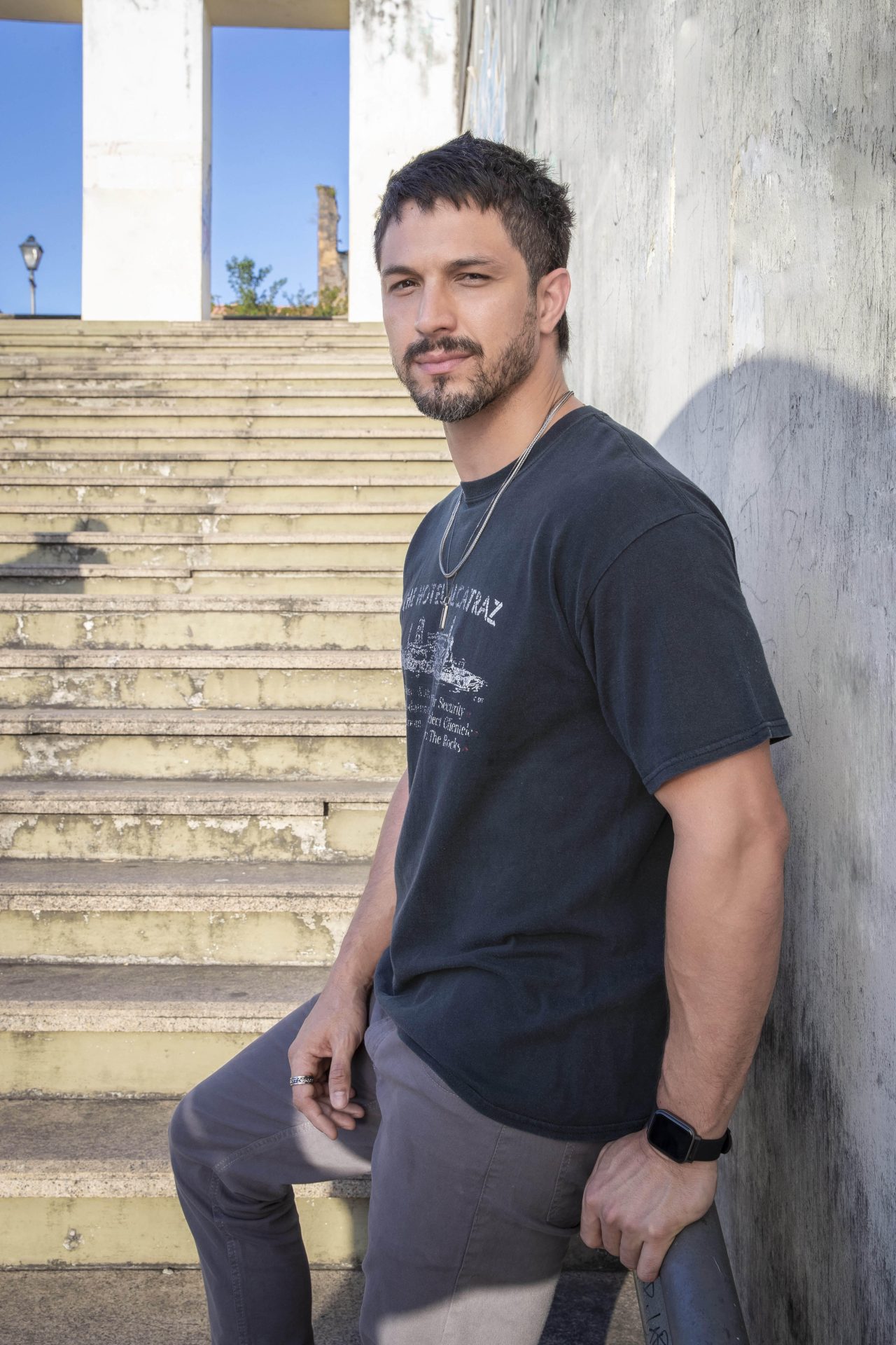 - Rodrigo Lombardi como Moretti em cena de Travessia, em Portugal (Imagem: Divulgação / Globo)