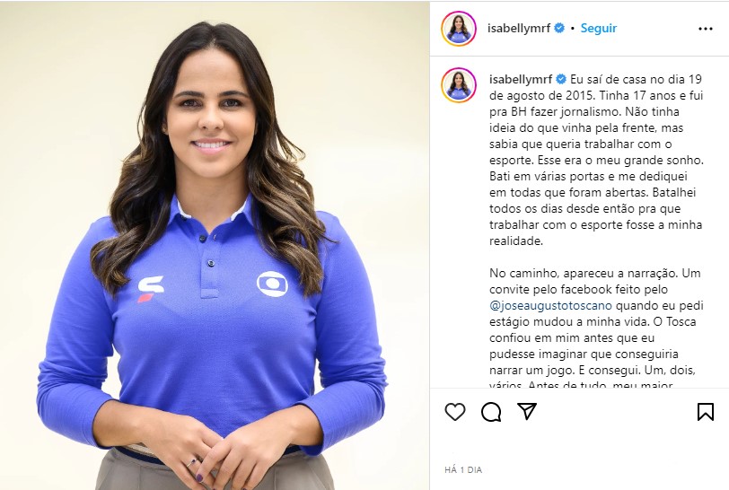 Isabelly foi descoberta por um reality show na Fox Sports. Desde 2020, a locutora era contratada da Band. A mineira foi confirmada na primeira rodada do Campeonato Paulista Feminino, no SporTV.