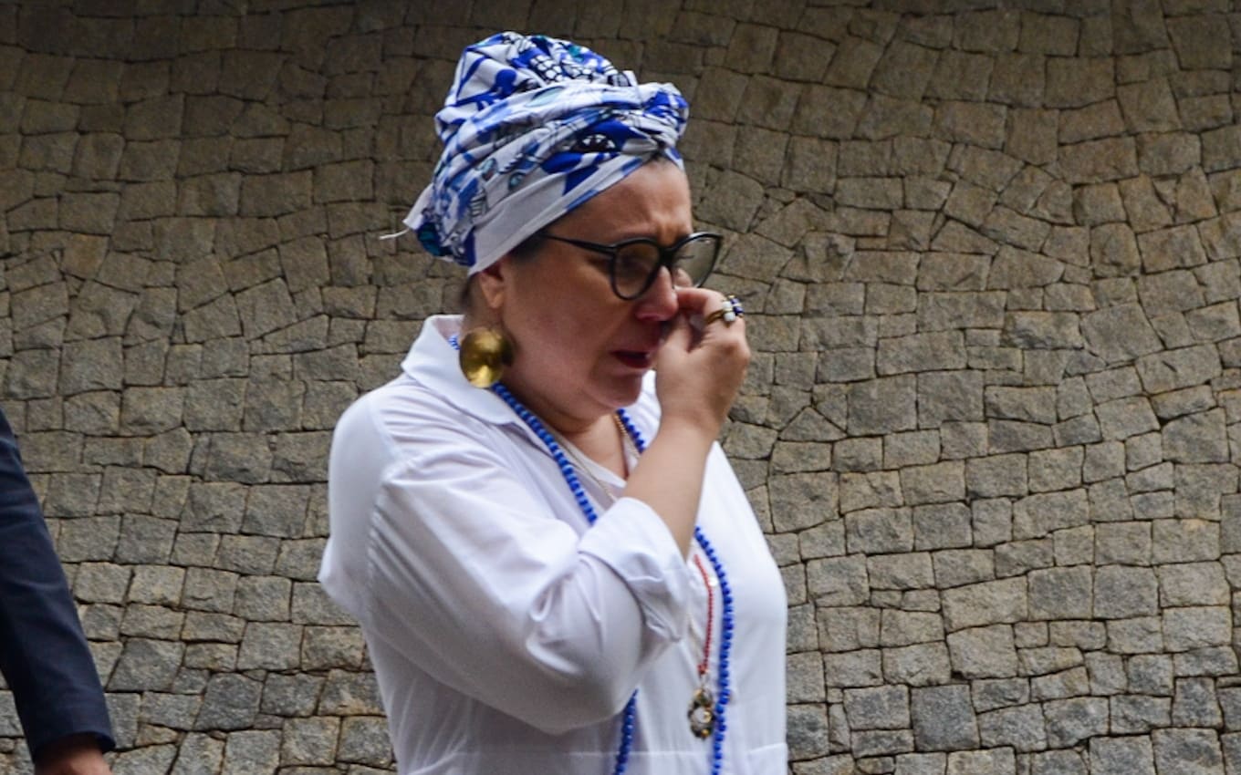 - Maria Rita emocionada no velório de Rita Lee(Imagem: Araújo / AGNEWS)