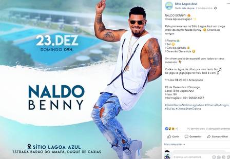 No último domingo (23), Naldo fez um show no sítio Lagoa Azul, em Duque de Caxias, na Baixada Fluminense; porém, pouquíssimas pessoas compareceram no evento para assistir a apresentação do artista. Mesmo assim, Benny não deixou o público na mão e cantou para eles.
