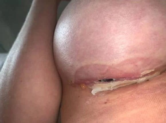 - Tati Minerato mostra lesão nos seios após cirurgia (Imagem: Reprodução/ Coluna Leo Dias)