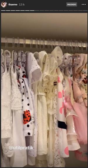 Thaeme Mariôto sempre costuma falar um pouco sobre o dia a dia da maternidade no seu perfil do Instagram. Desta vez, a sertaneja resolveu compartilhar com seus seguidores o closet de sua filha, a Liz de quase dois meses.