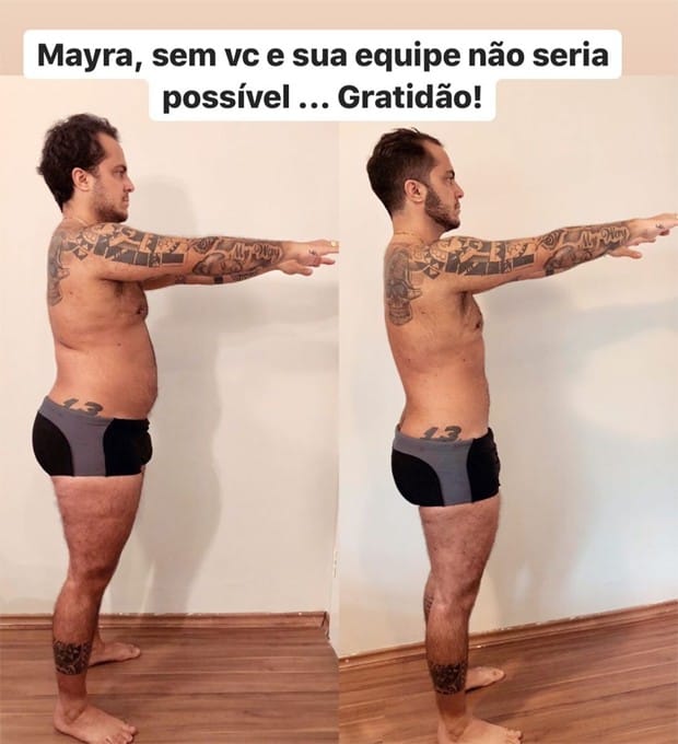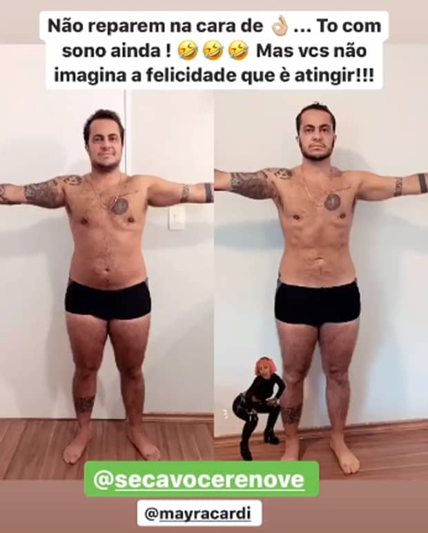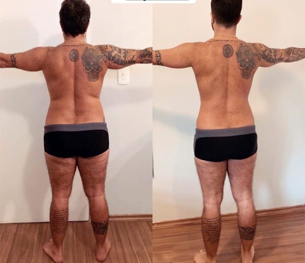 “Vocês vêm acompanhando minha alimentação, tudo o que venho fazendo. Vou mostrar o antes e o depois desse ciclo que encerro hoje. Vou continuar dando uma manutenção. Ainda quero secar mais um pouquinho, mas agora quero [ficar] mais relax [relaxado]”, afirmou ele em vídeo.