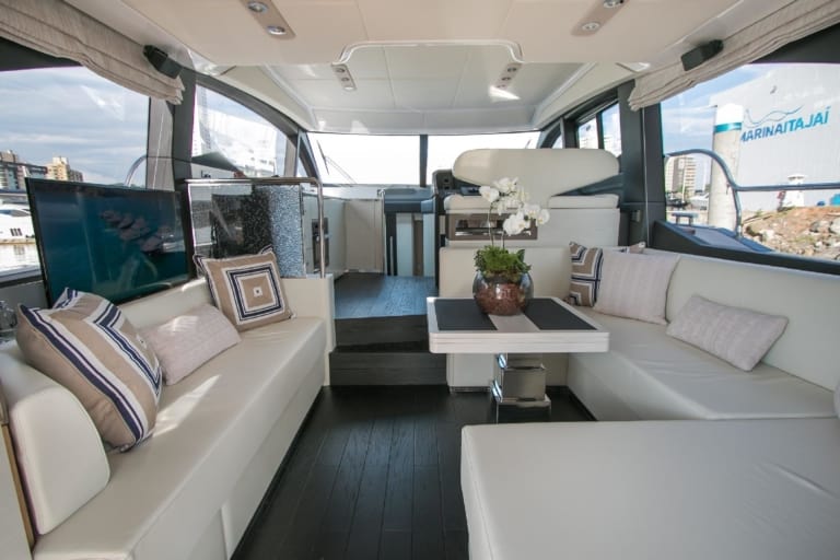 A embarcação da marca italiana Azimut Yachts custa aproximadamente R$ 5,9 milhões. O preço do iate vale pelas suítes luxuosas, uma sala de estar, áreas de jantar, além de um lounge na proa.